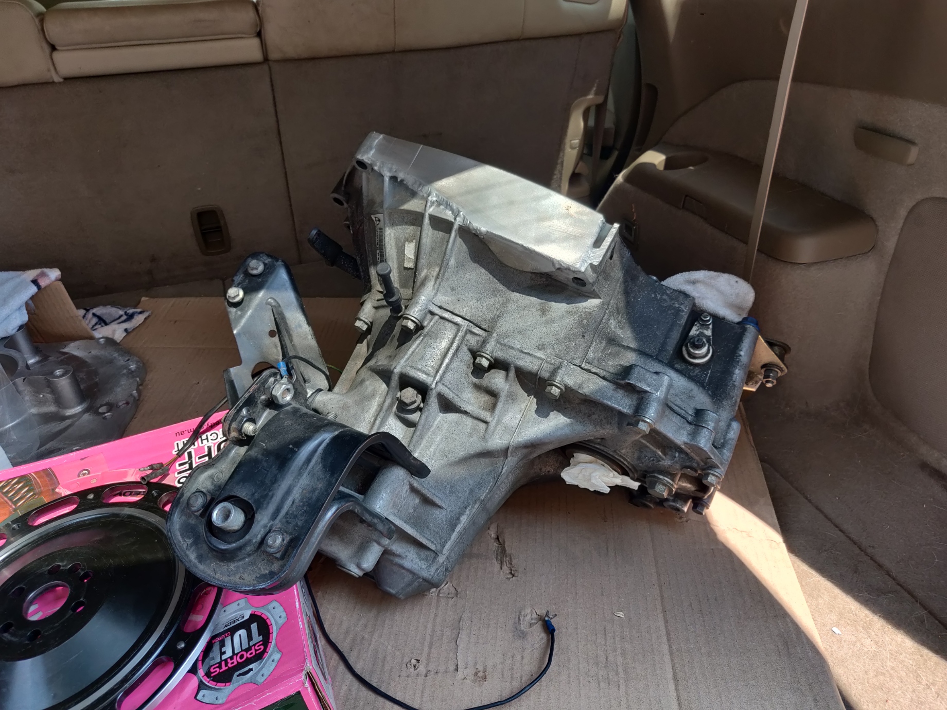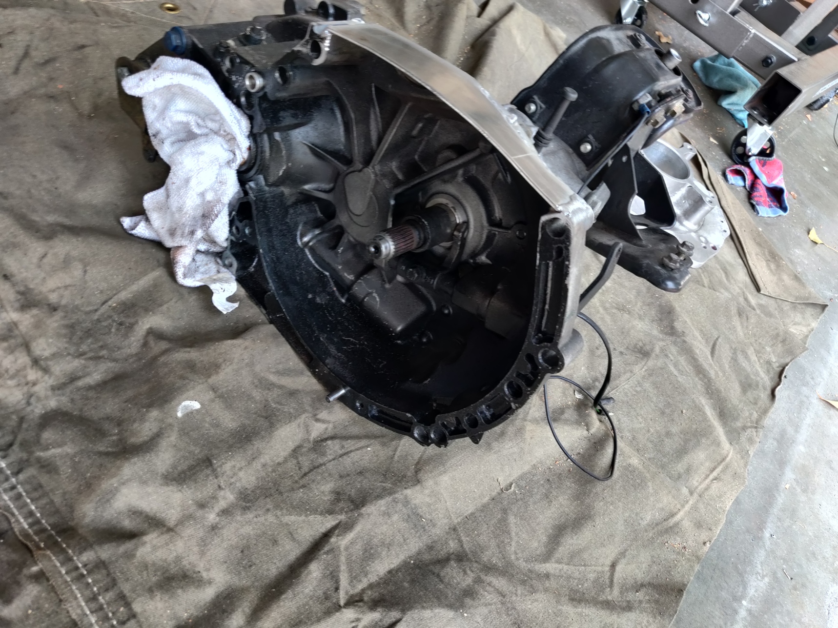 The images above show the transmission disconnected, and completely ready to be used again for the new motor.
